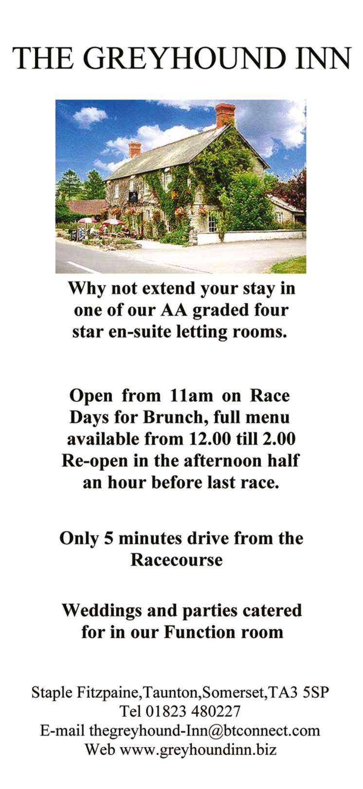 Telephone: 01823 337172 Email: info@tauntonracecourse.co.uk