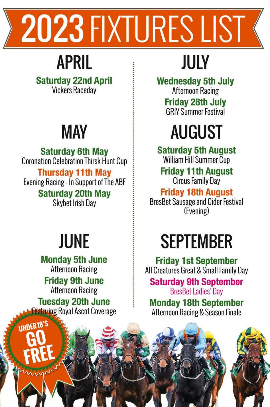 First Race 12.55 - THE DOWNLOAD THE VICKERS.BET APP EBF MAIDEN STAKES (CLASS 4) (GBB RACE) Distributed in accordance with the Stakes and Prize Money Code £4860 to the winning horse The second to receive £2281, the third £1141 and the fourth £570. for maiden two yrs old, which are E.B.F eligible Enter by noon, April 17th and pay £45 stake, Declare by 10.00 a.m. April 20th. Weights: Colts and geldings 9st 7lb; fillies 9st 2lb VICKERS.BET has generously sponsored this race and will present a memento to the Winning Owner and also award a cash prize to the Racing Groom responsible for the horse judged to be the Best Turned Out for this race THE TRUSTEES OF THE E.B.F have generously contributed £1000 towards the prize money for this race 20 entries at £45. - Closed April 17th, 2023. Owners Prize Money. Winner £3840; Second £1920; Third £960; Fourth £480. (Penalty Value £4860) SS