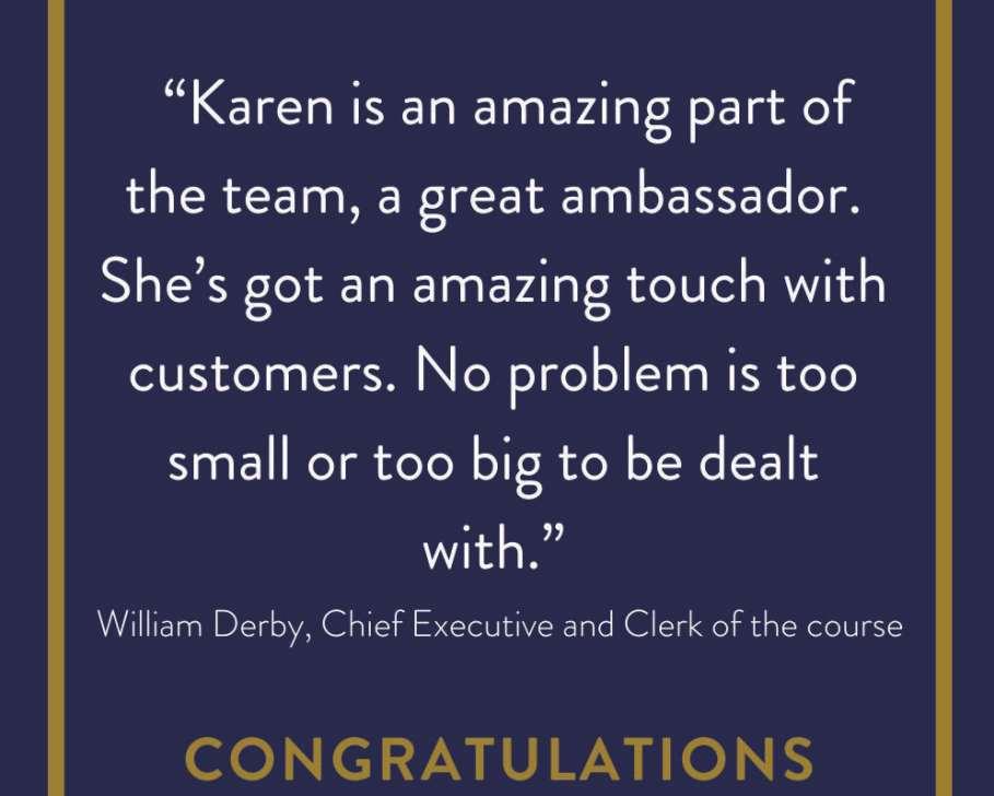 Third Race 2.10 THE KAREN DUNBAR HIGHLY COMMENDED HANDICAP STEEPLE CHASE (CLASS 4) Distributed in accordance with the Stakes and Prize Money Code. £3866 to the winning horse The second to receive £1781, the third £890, the fourth £445, the fifth £350 and the sixth £350. for four yrs old and upwards, Rated 0-120 (also open to such horses rated 121 and 122 see Standard Conditions). £35 stake if the horse is rated 94 or higher or £7 stake if the horse is rated 93 or lower with £28 extra if the horse is declared to run Declare by 10.00 a.m. November 21st. Penalties, after November 12th, 2022, for each steeple chase won 7lb KAREN DUNBAR will present a memento to the winning owner and award a best turned out prize to the Stable hand responsible for the best turned out horse in this race. 17 entries at £35 Closed November 17th, 2022. Owners Prize Money Winner £2963; Second £1482; Third £741; Fourth £371; Fifth £280; Sixth £280. (Penalty Value £3866.66) Weights lowered 2lb SEE PAGE 18 FOR THIS RACE.