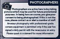 The Management reserves the right to refuse admission to anyone and to remove any person from the Course without assigning a reason for so doing and do not accept responsibility for loss or damage to persons or their property.