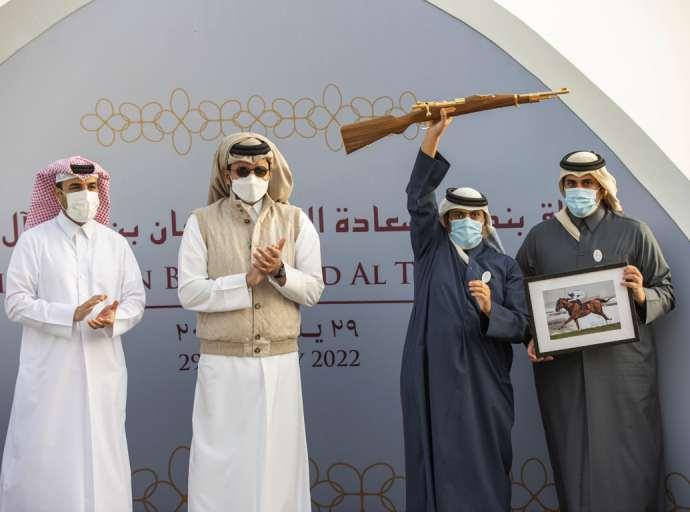 Following the conclusion of the ten-race card, His Excellency Sheikh Joaan Bin Hamad Al Thani crowned the winners of the last two races - the Group 3 PA HE Sheikh Joaan Bin Hamad Al Thani Trophy for Purebred Arabians, won by the Al Shaqab Racing’s Mwarid, and the HE Sheikh Joaan Bin Hamad Al Thani Rifle for Thoroughbreds, won for a second consecutive year by Al Wasmiya Farm’s Noor Al Hawa.