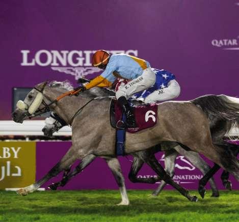 Noor Al Hawa’s win in the Qatari Group 1 the HH The Amir Trophy was certainly not unexpected as the eight-year-old son of Makfi had been foot perfect in all his starts through the season for trainer George Mikhalides. Partnered by Alberto Sanna, the pair settled in behind Off He Goes who set a steady pace. Waiting until the 400m mark to make a move, Noor Al Hawa readily put several lengths between him and the secondplaced Berkshire Rocco, trained by Andrew Balding. Though the UK challenger gave chase, there was still almost 3l between them at the line with Injaaz Stud’s Hellenistique a quarter of a length in third.