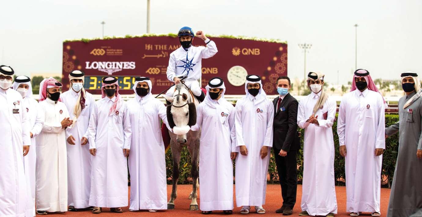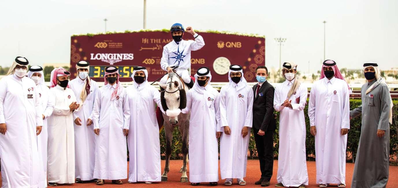 Al Wasmiyah Farm’s thoroughbred Noor Al Hawa continued his remarkable streak and remained unbeaten through the 2020-21 season when taking the HH The Amir Trophy