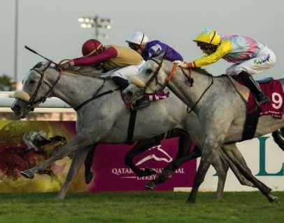 Al Shaqab Racing’s Al Mirage secured the mile Qatar Derby for threeyear-old local bred Arabians for trainer Eric Lemartinel and jockey Faleh Bughanaim. Half a length behind was Blue Star, and both finished clear of Al Sij Al Sakab over five lengths away in third