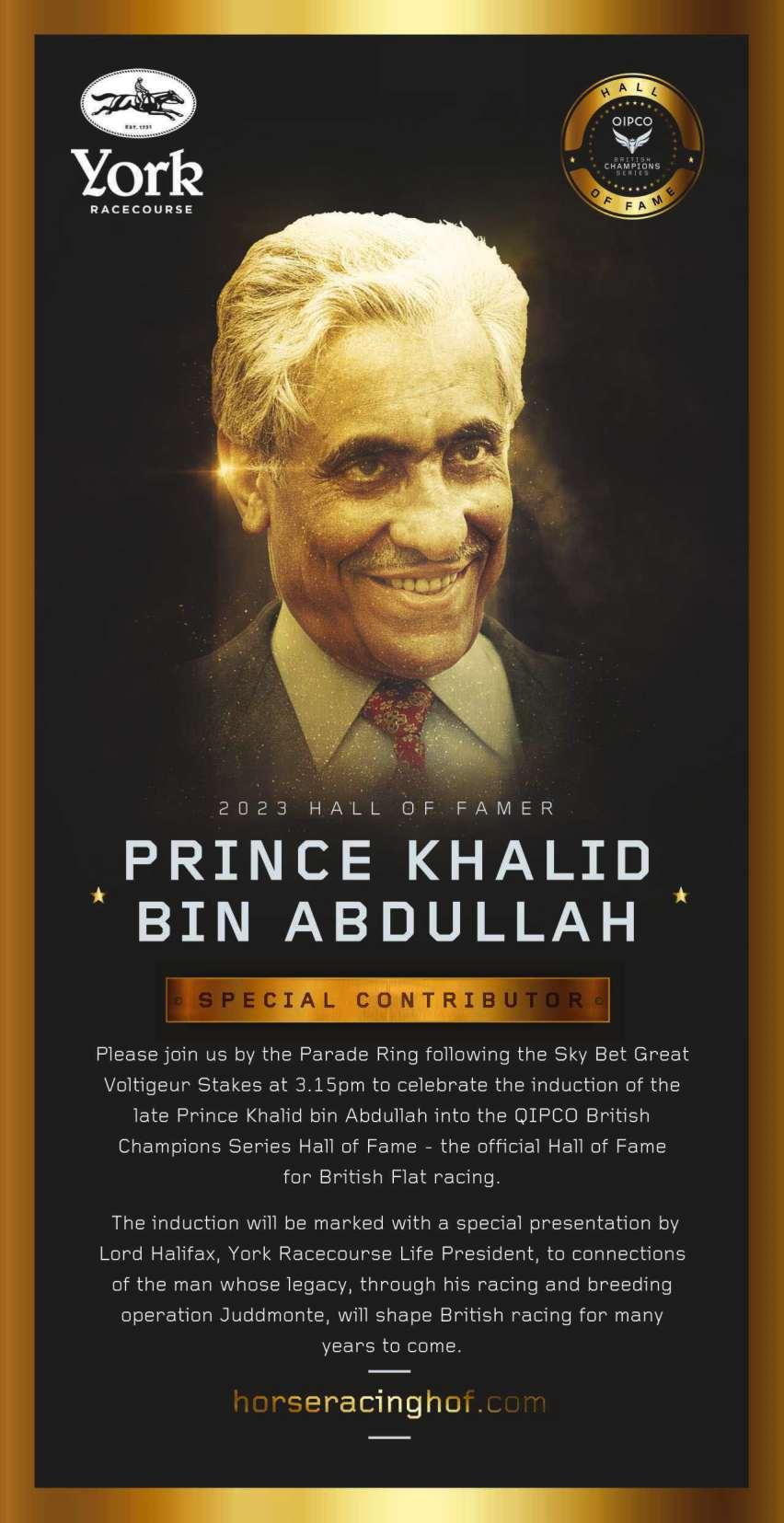 For over thirty seasons now, our showpiece has been supported by Juddmonte, and we remain hugely appreciative of their backing. We are delighted that the late Prince Khalid Bin Abdullah is being inducted into the British Champions Series Hall of Fame, do watch the presentation in the Parade Ring ahead of the Juddmonte International, to acknowledge his legacy.