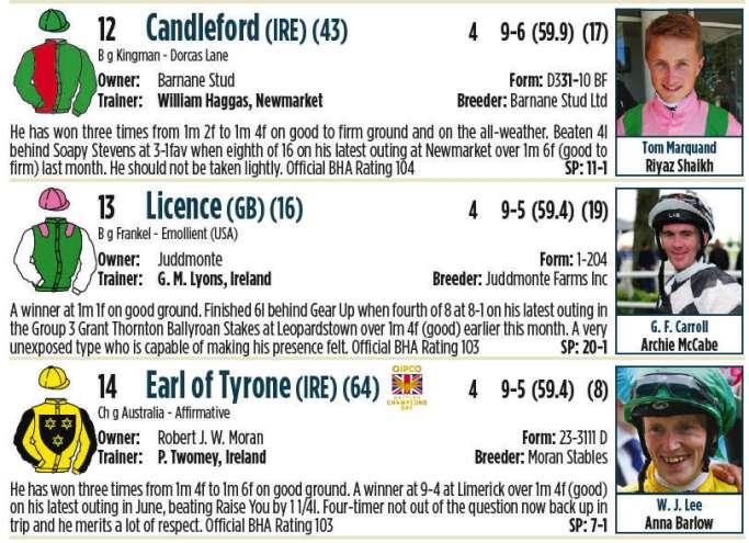 He has won three times from 1m to 1m 2f on the all-weather. Finished 3 1/2l behind Take Heart when sixth of 17 at 12-1 on his latest outing at Goodwood over 1m 2f (good) last month. Official BHA Rating 91 SP: 15-2