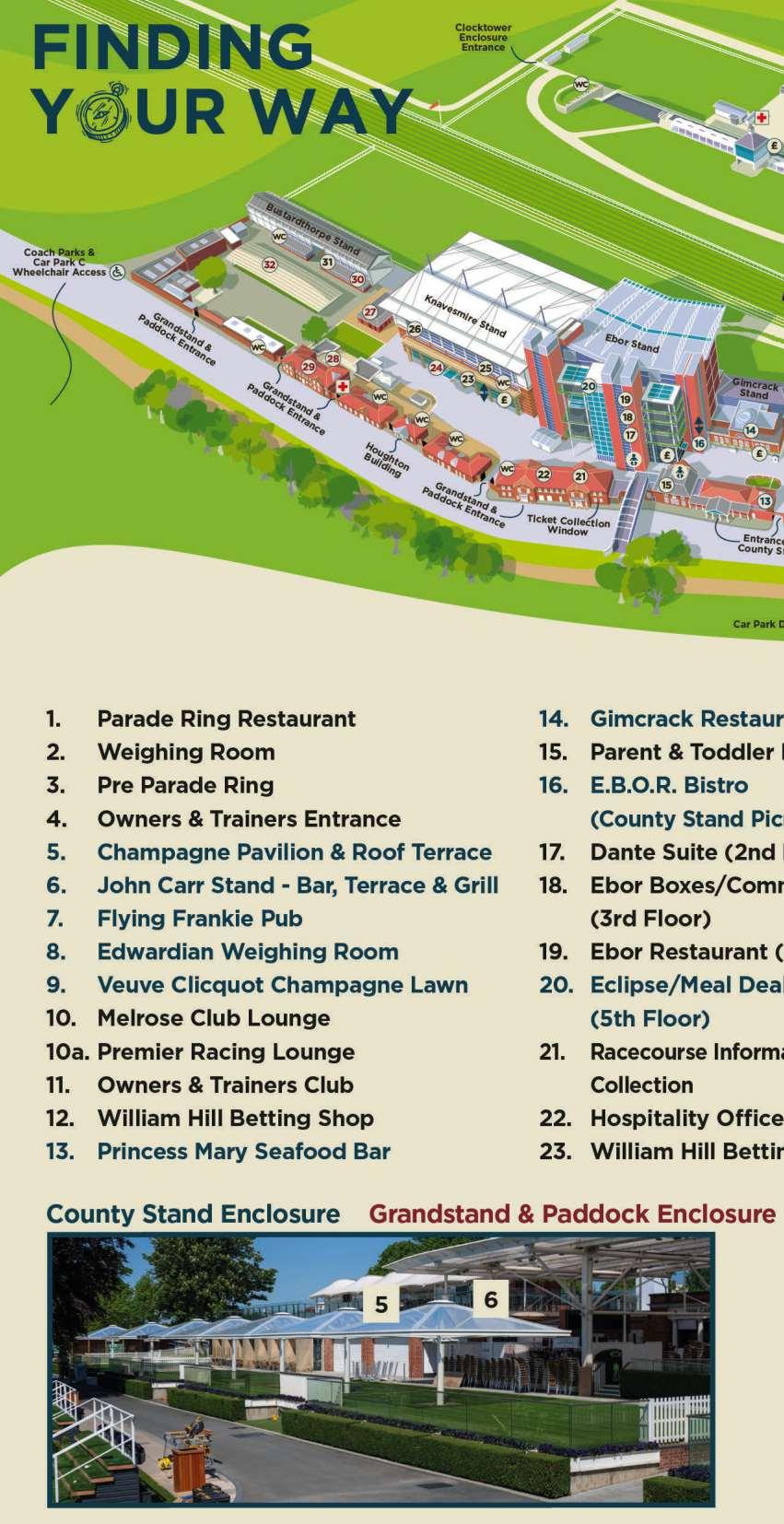 Great views of racing, Yorkshire, fresh club sandwiches, and an account bar. Limited upgrades available from £103 - visit the office to learn more.