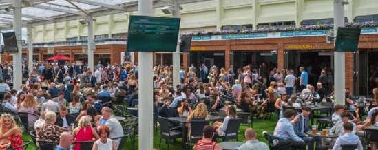 The Edwardian Weighing Room a popular bar is joined by the new Wine & Cheese offer, with fourteen wines by the glass, selected cheeses & charcuterie platters. John Carr Terrace: Bustling informal lawns and terraces near the parade ring. Try hot treats or the griddle. Or toast the summer with a jug of Pimm’s, visit the The Flying Frankie Pub serving our guest ale, Ebor IPA @£6.40.