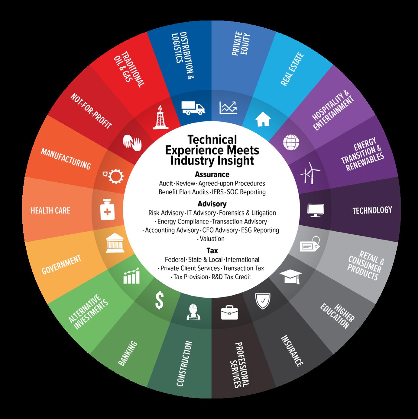For businesses that span industries, our teams work together to deliver insights and customized solutions. It’s common for us to have teams of audit, tax and advisory professionals who work primarily with similar companies, such as private equity firms and their portfolio companies.