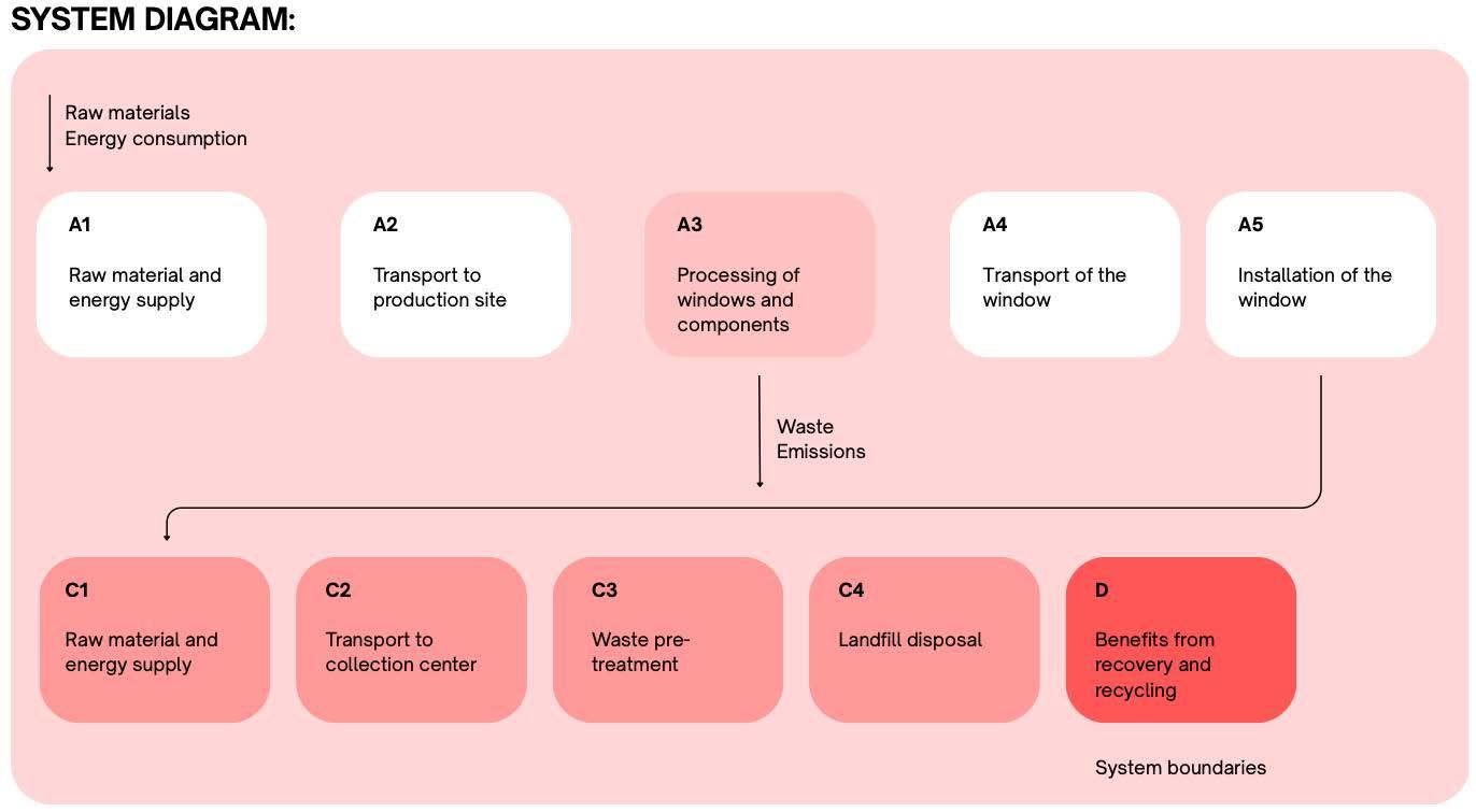 L’obiettivo è stato quello di quantificare gli impatti ambientali associati alla produzione di 1 m² di finestra in Pino lamellare finger-joint, materiale impiegato nel 46% degli ordini effettuati nel 2024 dall’azienda, e ottenere una Environmental Product Declaration (EPD) di settore per le finestre italiane, seguendo le normative ISO 14040-44, EN 15804+A2:2019 (“cradle-to-gate”), e le PCR per prodotti da costruzione.