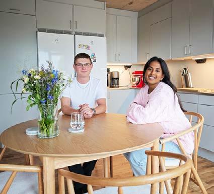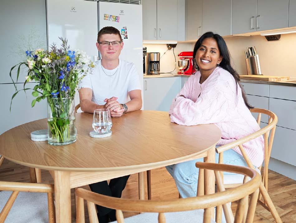Paret lyfter fram mötet mellan det industriella och det moderna, det generösa ljusinsläppet och genomtänkta detaljer som eluttag och kökslösningar. Sedan midsommar 2025 har de bott i sin trerummare, med närhet till både tågstation och service. – Vi är förälskade i lägenheten, säger Nayanika och Jonathan och tittar på varandra i sin fina lägenhet.