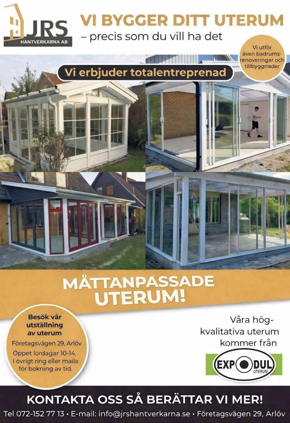 I höst firar JRS Hantverkarna tio år, och sedan sju av dessa har företaget specialiserat sig på uterum. Under resans gång har de gått från olika byggarbeten till att erbjuda totalentreprenad – från planering till montering. Tillväxten har varit stadig, både vad gäller omsättning och verksamhet, och företaget har vid flera tillfällen utsetts till Årets företag.