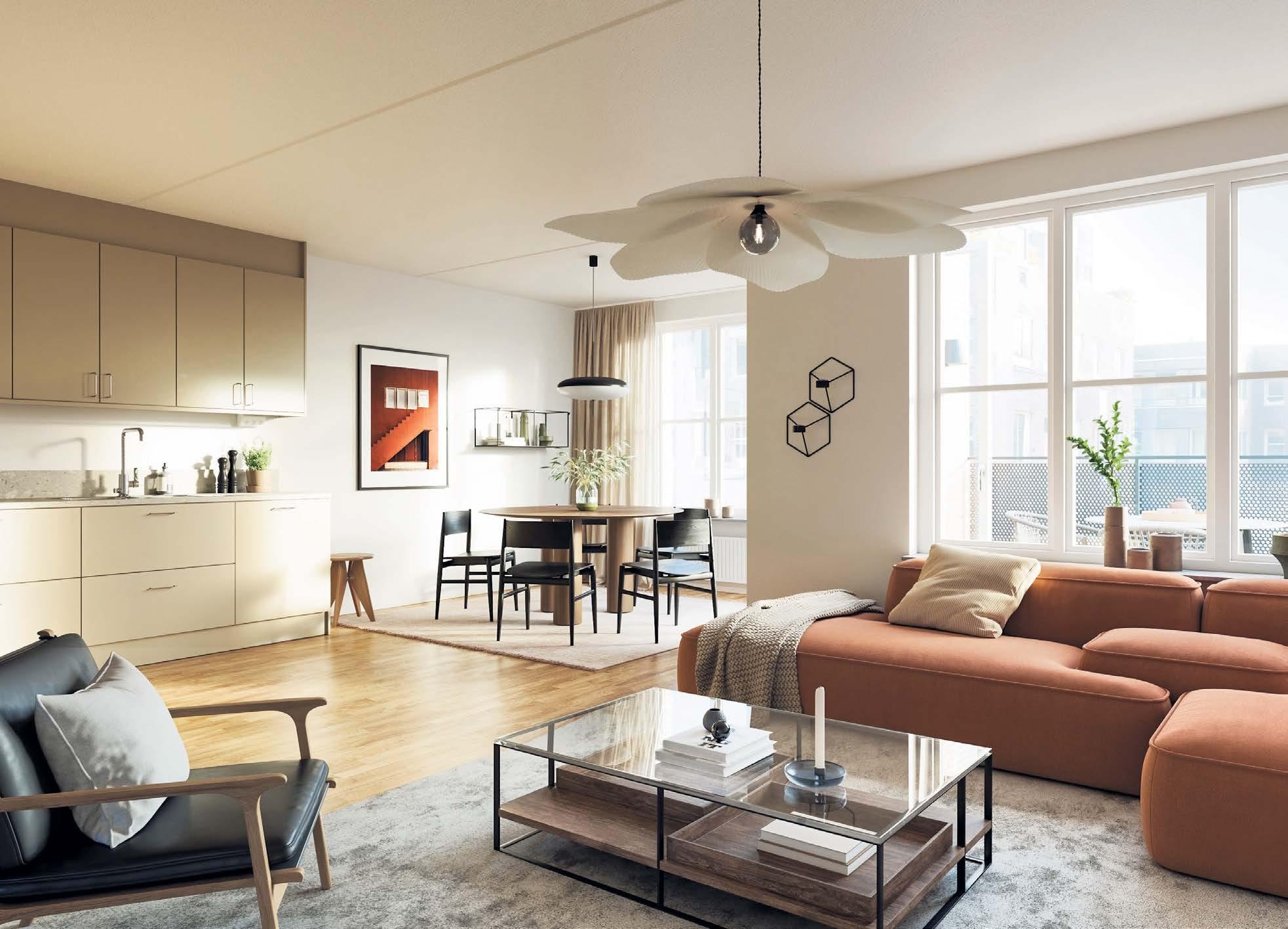 En viktig princip har varit att behålla byggnadens ursprungliga fotavtryck. Resultatet är rymliga lägenheter – till exempel treor på omkring 80 kvadratmeter – något som uppskattas särskilt av dem som flyttar från villa.