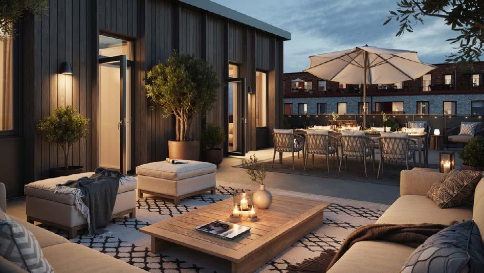 standard med fullskaligt kök, helkaklade badrum med tvätt- och torktumlare i de större lägenheterna och kombimaskin i de mindre samt helglasade duschväggar. – JM har varit i Dockan i många år och känner sin kundgrupp. Vi satsar på att få till ett brett utbud som passar alla åldrar. Vi försöker också tillvarata den industriella historien genom att exempelvis välja rött tegel i fasaden och vertikal träpanel på takvåningarnas fasader för att också matcha den omkringliggande bebyggelsen på platsen ■