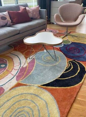 Mattor från Bargi med Hilma af Klints fantasifulla och färgglada mönster är handtuftade i ull och mitt i prick för den som vill få in lite mera färg i sin inredning. Hilma af Klint är en av Sveriges mest uppburna konstnärer. Under en lång tid var hon nästan helt okänd men