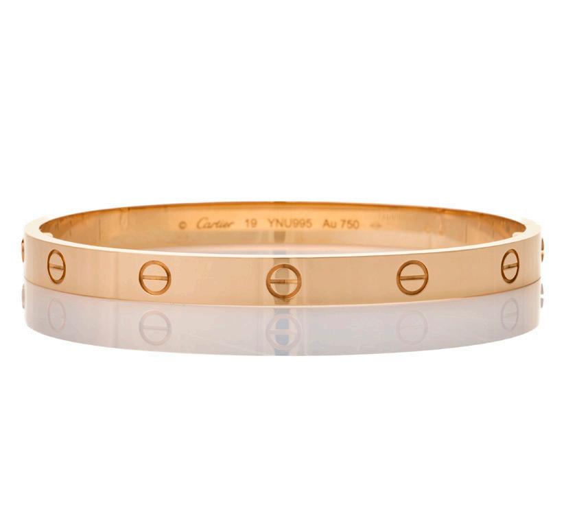 Cartier, 18ct rose gold, Love bangle ref CRB6067419 S # YNU995. Cartier size 19, inner measurements 6.30mm × 5.30mm. Finished weight 35.75 grams. Finished width 6.0mm. Comes complete with, Cartier screwdriver, box and papers.