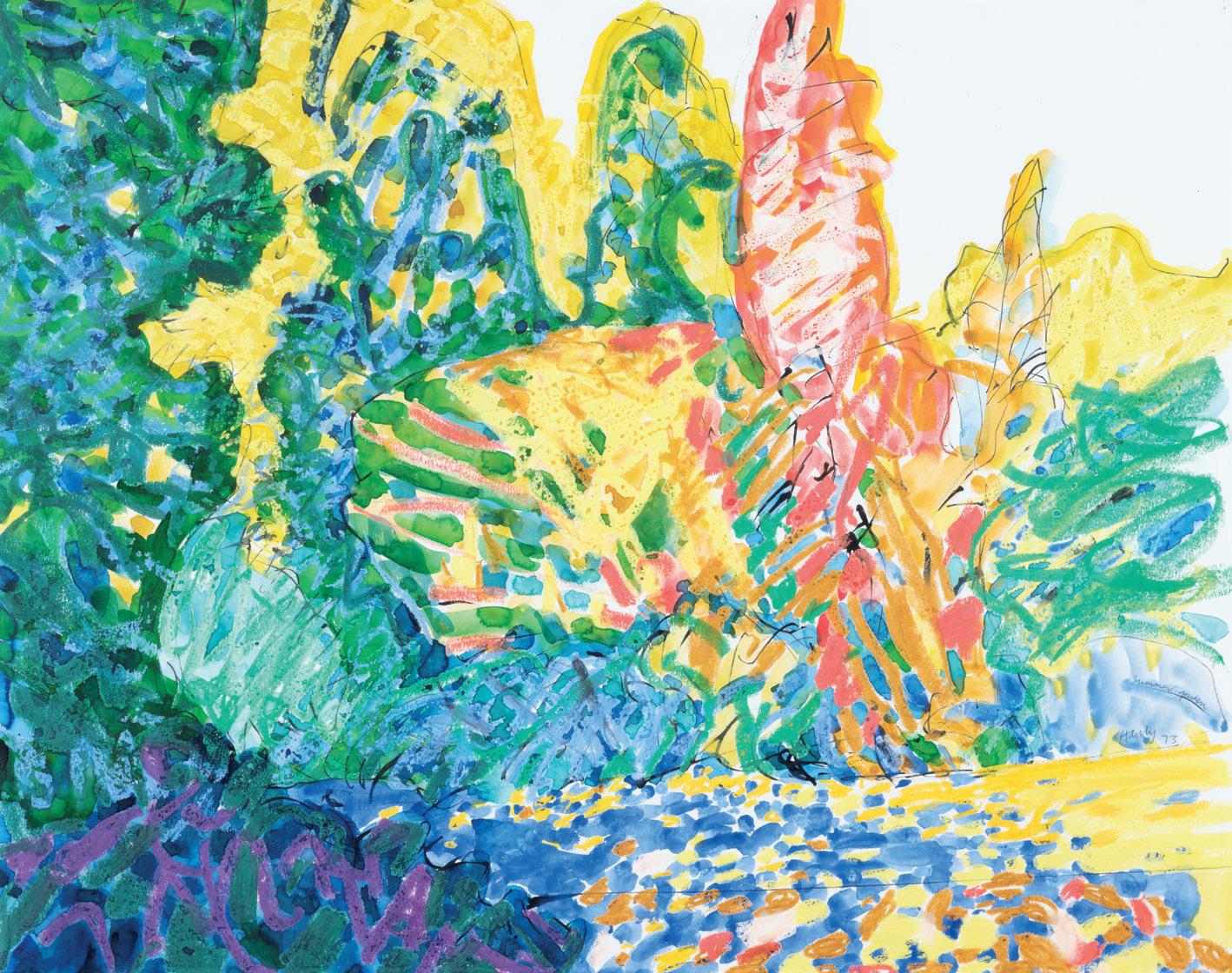 Pat Hanly’s uniquely vibrant paintings offer a charming counterpoint to the moody themes and palettes of many of his New Zealand modernist contemporaries. His paintings often feature expressive paint application and the use of bright, summery colours. The two works featured in this catalogue, Hope of Paradise and Summer Garden, capture the essence of Hanly’s distinctive painting practice. They are richly expressive paintings, that give weight to the artist’s status as a painter of historical importance. Although comprised of simple imagery, the nuanced paint layering and deft use of colour give rise to a satisfying sense of complexity. Hanly’s work has enduring appeal, and will continue to find admirers for decades to come.