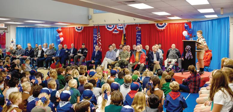 It was an honor to welcome veterans from our school community back to campus to join the Lower School for its 2022 Veterans Day celebration. Our special guests were greeted with the sight of 1,000 American flags placed on the Lower School's outside lawn and homemade thank-you displays in the Lower School lobby. The Lower School Girl Scout and Boy Scout troops also welcomed visitors and escorted veterans to their seats. Veterans were also invited to visit individual classrooms to share their experiences and what their military service meant to them.