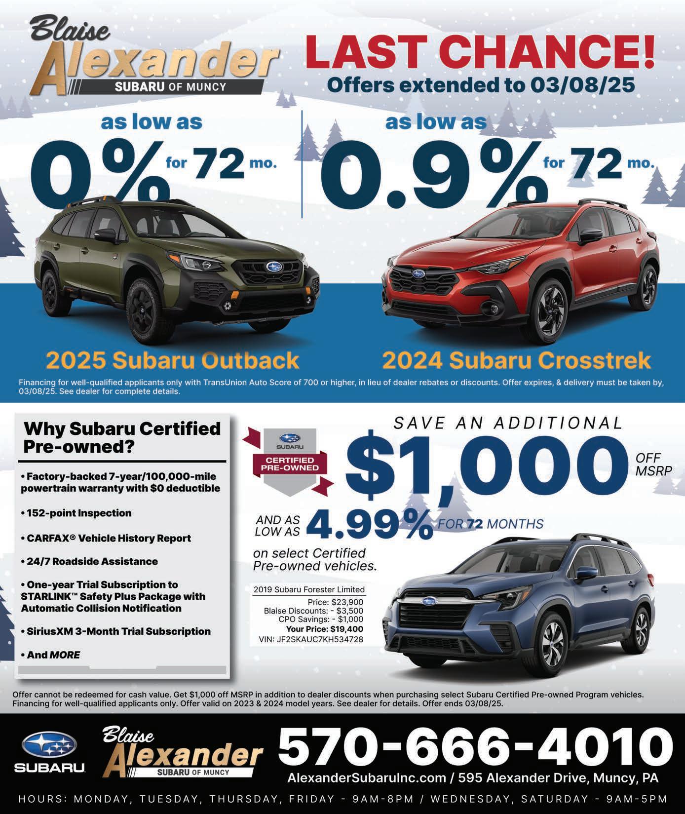 Generous support from Blaise Alexander Family Dealerships, including $175,000 in matching donations and cash prizes, inspires charitable giving and highlights the transformative power of investing locally. Additional monetary prizes and incentives will be provided by Evergreen Wealth Solutions, along with partners such as First Citizens Community Bank, Larson Design Group, Pennsylvania Skill by Miele Manufacturing, Subaru, Toyota Motor Corporation, and Weis Markets.