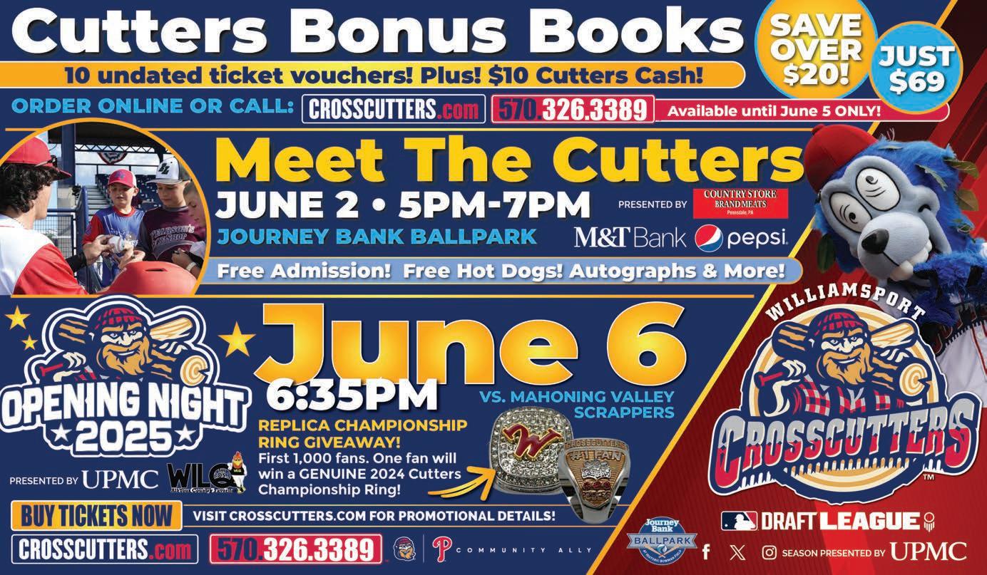 For the first time in a little more than 20 years, the Williamsport Crosscutters will seek to defend a league championship they won the previous season when they open their season at State College on June 4. They begin their home schedule on Friday, June 6.
