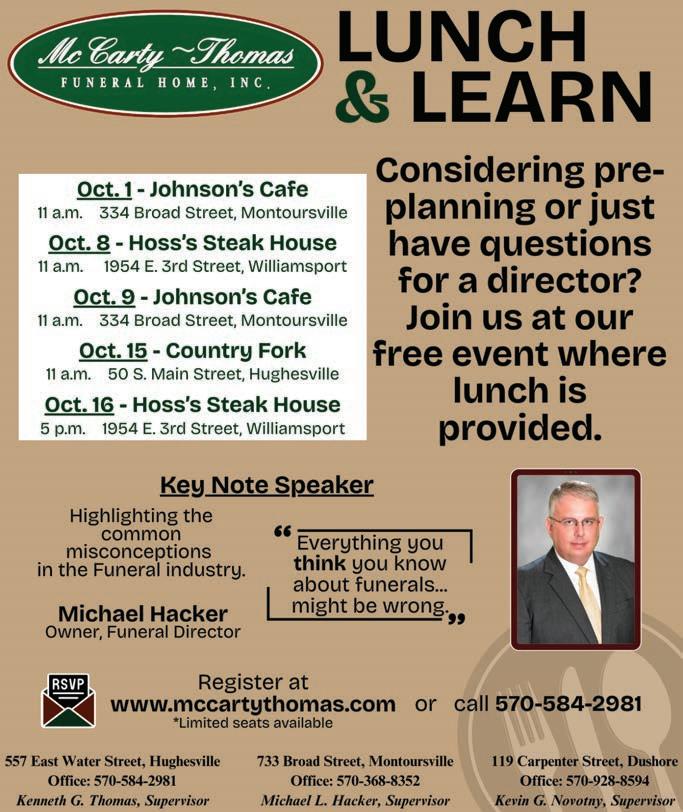 e September 18th celebration now represents more than an agricultural showcase; it embodies the kind of community solidarity that both Gordon and Metzger advocated. Your support and participation are crucial to the success of events like the upcoming Farmto-Table Night. Community members interested in participating can contact Lycoming County o ces for vendor information or attendance details.