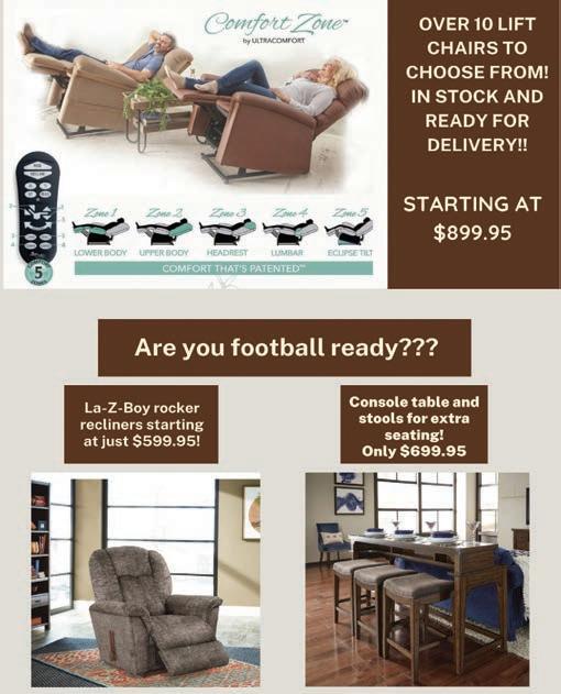 September 13, 2023• Webb Weekly • 38 Fall Home Improvement Call 570-326-9322 DINING ROOM • BOOKSHELVES LIVING ROOMS • BEDROOMS MATTRESSES • PRIMITIVE FURNITURE 5284 NITTANY VALLEY DRIVE, LAMAR 570-726-6709 MON-THU: 7AM TO 5PM FRI: 7AM TO 6PM | SAT: 9AM TO 3PM
