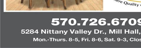 May 15, 2024 • Webb Weekly • 6 www.webbweekly.com Call 570-326-9322 65 Mill St., Mill Hall, 17751 570-726-7848 Closed May 20th JERSEY SHORE FARM MAR KET OPEN EVERY THURSDAY! (570) 444-5713 1308 S. RT. 44 JERSEY SHORE, PA INDOOR & OUTDOOR VENDOR SPACE AVAILABLE CALL FOR DETAILS • NANS DONUTS • SOFT PRETZELS • FROSTY TREATS • BAKED GOODS • DOGGY TREATS • DELI MEATS & CHEESES • SANDWICHES & SALADS • GROCERIES & PRODUCE 8AM-3PM BAKING SUPPLIES AND MORE! SPECIAL 10 % DISCOUNT ON BACON