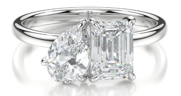Introducing the Sofia engagement ring, an exceptional creation featuring two meticulously set centre stones, elegantly embraced by a sleek solitaire band. This exquisite design embodies the timeless beauty of the toi et moi style, all crafted with precision in our Hatton Garden workshop.