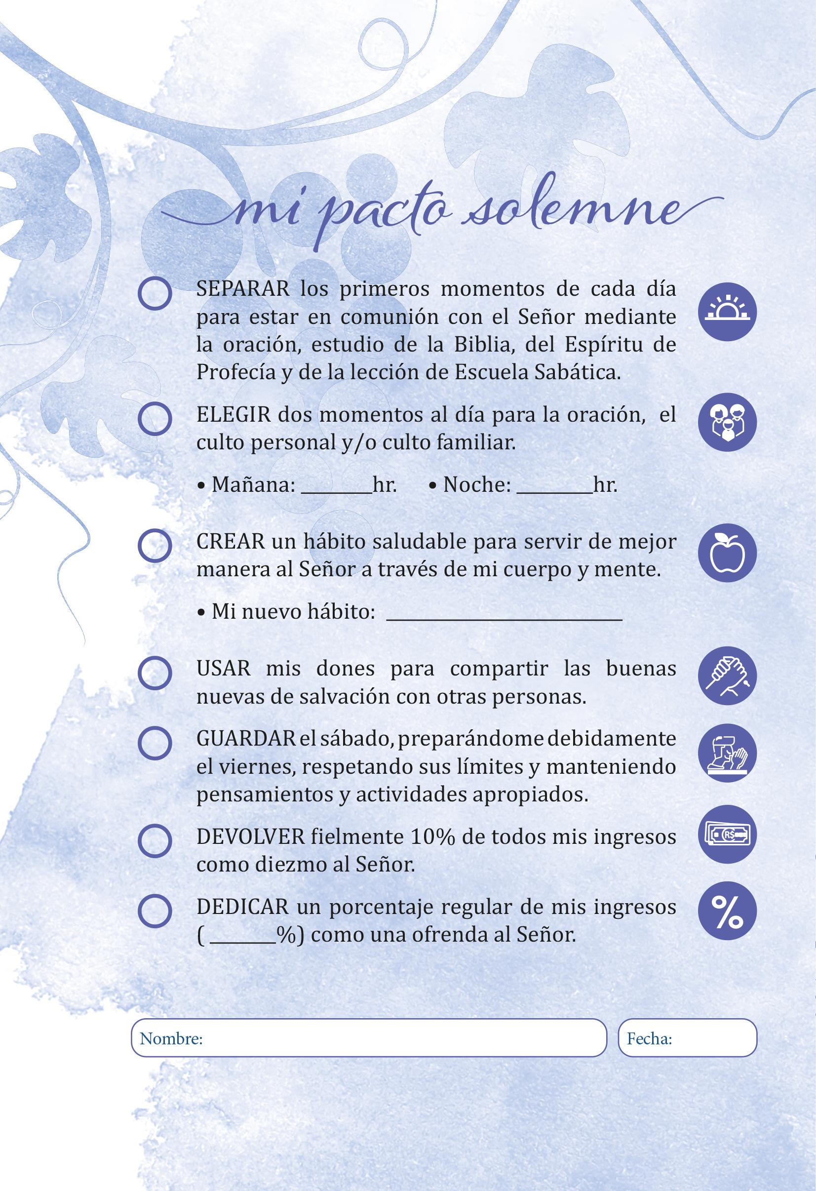 Decisión: Para asegurar tu crecimiento espiritual, establece un horario cada día para estar en comunión con Dios a través del estudio de la Biblia, el Espíritu de Profecía y la lección de Escuela Sabática.