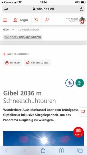 3. Der Link führt zum SAC-Tourenportal. Oder, falls installiert, öffnet sich die SAC-App.