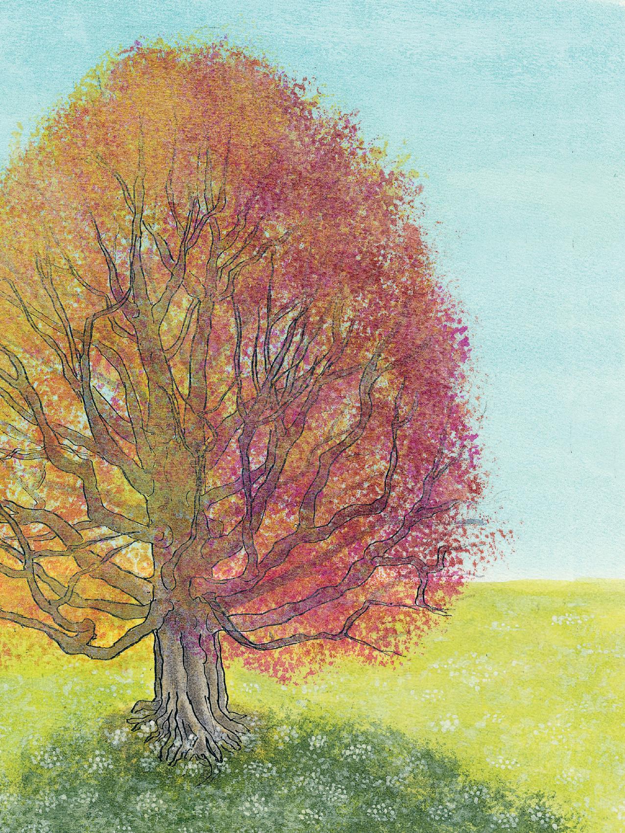 Kühl ist die klare Morgenlu!, als sich Anton auf einem Ast der Purpurbuche niederlässt. Er reckt den Kopf nach links, nach rechts. Ein Blick hinauf zum Taubenast, steil über ihm. Es regt sich nichts. Und auch in der Baumhöhle im Stamm, dort, wo Frau Kauz zu Hause ist, ist alles still. Die Bühne gehört ihm.
