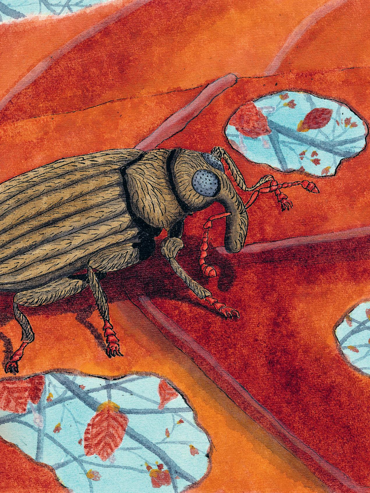 Ein Buchenspringrüssler ist früh unterwegs. Er krabbelt hinauf zum Amselast, dort, wo der begehrteste Logenplatz liegt. Hier oben endlich angekommen, steht Bella still und %üstert leise vor sich hin: «Es ist schon Zeit, wo bleibt er nur? Es wird ihm doch nichts zugestossen sein?» Nervös knabbert sie an einem blutjungen Blatt.