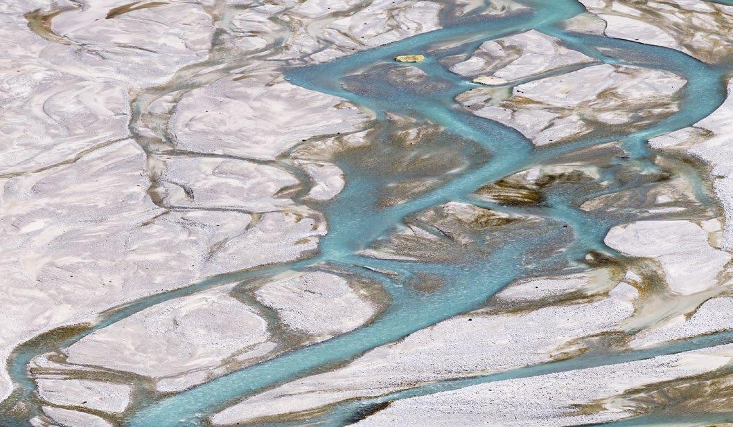 V-Täler, Sandbänke, Flussdeltas, Schwemmebenen