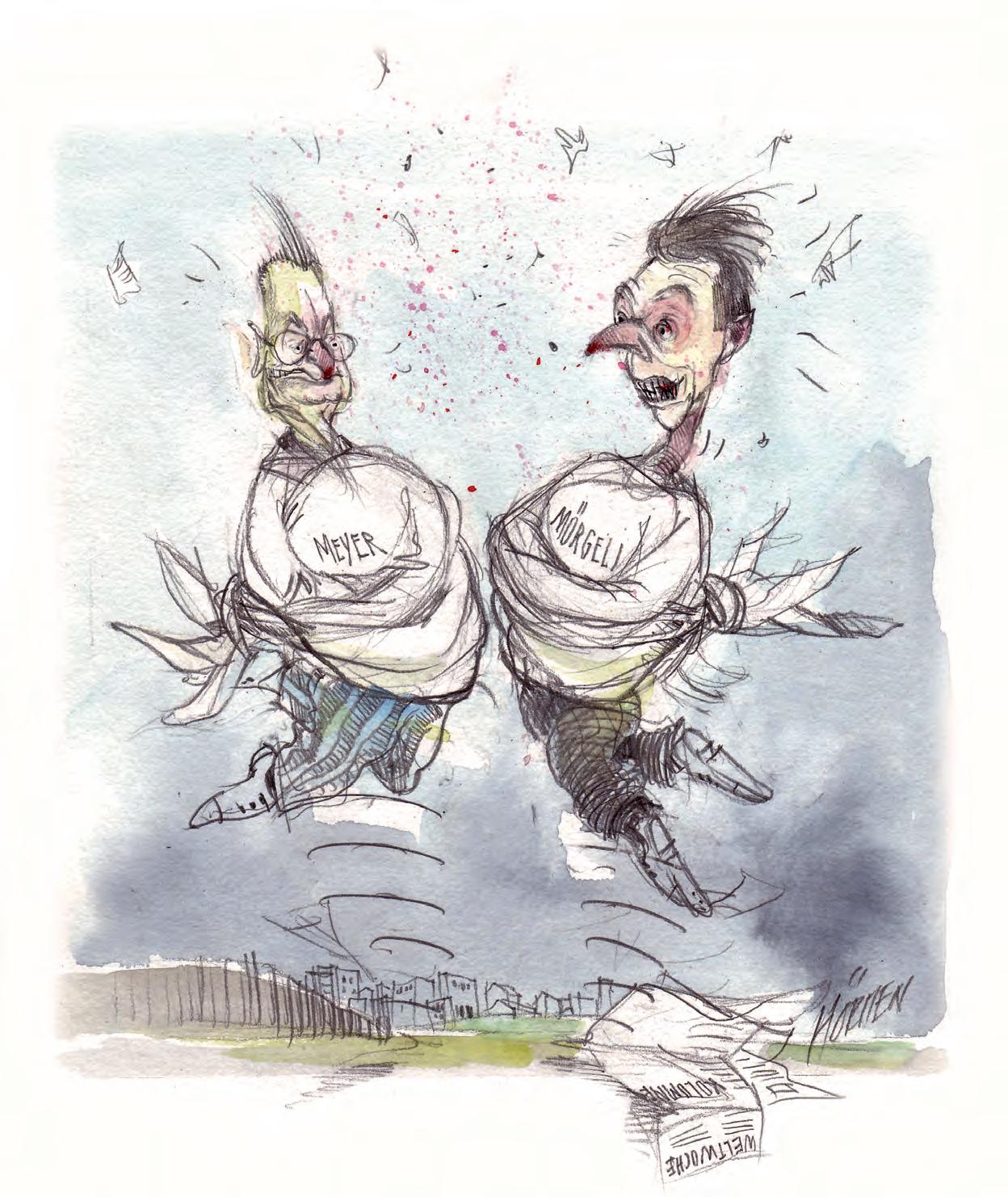 lern anfertigte, eine unüberblickbare Zahl von Definitionsversuchen zusammengekommen, und dennoch ist mir bis jetzt noch keine restlos taugliche begegnet. Eigentlich würde ein Blick auf die heutige Breite bildsatirischer Techniken und Stile dafür genügen: Wer diese Gattung in Bausteine und Kompositionsregeln zerlegen will, muss zwangsläufig an ihrem steten Wandel scheitern. Und zwar, weil er die falsche Frage gestellt hat. Das eigentliche Wesen der Satire liegt weniger im «Womit?» als vielmehr im «Wozu?». Und hier kommt der gekränkte Idealist wieder ins Spiel.