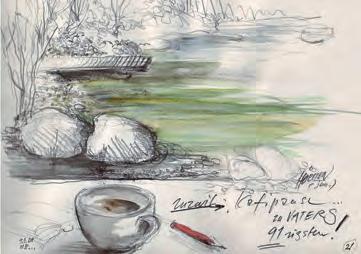Dank seiner exzellenten Beobachtungsgabe kann Hörmen Landschaften, Architektur, Situationen, Personen und Themen in einem Blick erfassen. Mittels starker Reduktion vermag er so auch das Komplexeste wiederzugeben. Details werden wie kostbare Gewürze darüber gestreut. Immer wieder geht es Hörmen um das Ausloten von Grenzen des Darstellbaren. Dass dabei die Ambivalenz als Grundstimmung und Realitätserfahrung in all seinen Werken – ja selbst in den Cartoons und Karikaturen – erhalten bleibt, ist sein grosses Geheimnis. > kafipause-3 und smaragdechse So ist es nicht verwunderlich, dass sich besonders Hörmens Reiseskizzen, private Zeichnungen und Radierungen, ja selbst seine gemalten Werke mehr oder weniger einer direkten Übersetzbarkeit entziehen.