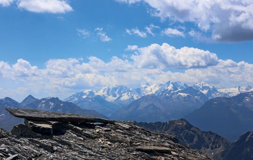 ▼ Aussicht ins Berninagebiet: auf dem Gipfel des Piz Blaisun.