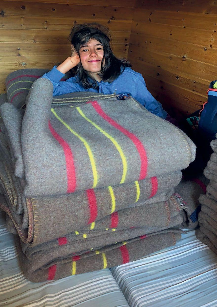 Das Biwak bietet zehn Schlafplätze und jede Menge Wolldecken. Da es innen mit Holz isoliert ist, sind die Temperaturen in der Nacht angenehm.