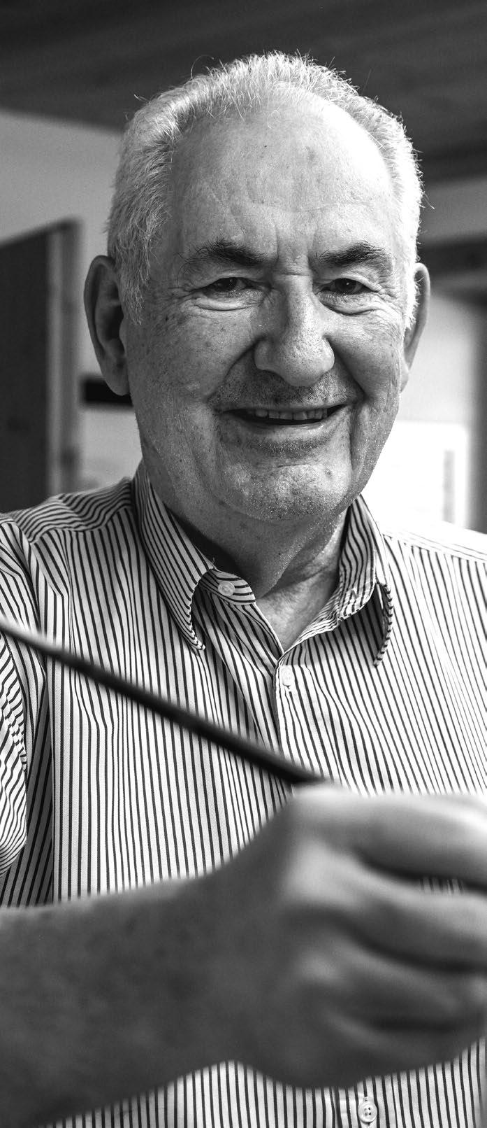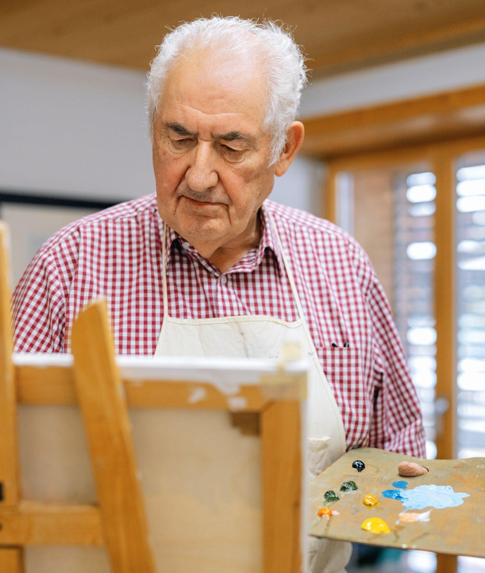Die Karriereleiter beginnt bei manchem Künstler mit der Sta ffelei – nicht so bei Hans Jossi, der seine Anfänge als Gipser-Stuckateur in St.Gallen machte. Die staubige Erkenntnis, dass Pinsel in der Kunst effektiver als Kellen sind, führte ihn auf den Weg des Zeichnens und der Ölmalerei. Mit sehr viel Eigenantrieb, ein paar Workshops und dem einen oder anderen inspirierenden Künstlerkontakt mutierte Jossi vom Stuckateur zum Landscha smaler. Sicher musste er, um die Familie durchzubringen, in einer Geschä sleitung über viele Jahre auch Geld verdienen –aber die Sehnsucht nach Leinwand und Farbklecksen liessen ihn nie los.