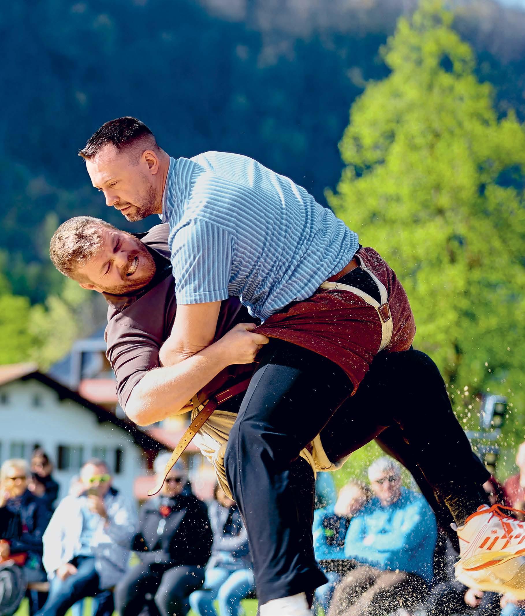 Das Krä!emessen gehört seit jeher zur Geschichte der Menschheit, und vor 125 Jahren war das nicht anders. Damals kamen die krä!igen, jungen Männer zusammen, um sich im Saal der Wirtscha! Reuteler in Saanen im «Hosenlupf» zu üben. Das unter fachkundiger Anleitung und mit dem Ziel, Technik, Präzision und Sicherheit zu verbessern. Was einst als Empfehlung begann, hat sich heute zu einem unverzichtbaren Bestandteil des Trainings entwickelt: Wiederholte Übung der Schwünge, gezielte Körperstabilisierung und professioneller Muskelaufbau gehören ebenso dazu wie die mentale und physische Betreuung der Athleten.