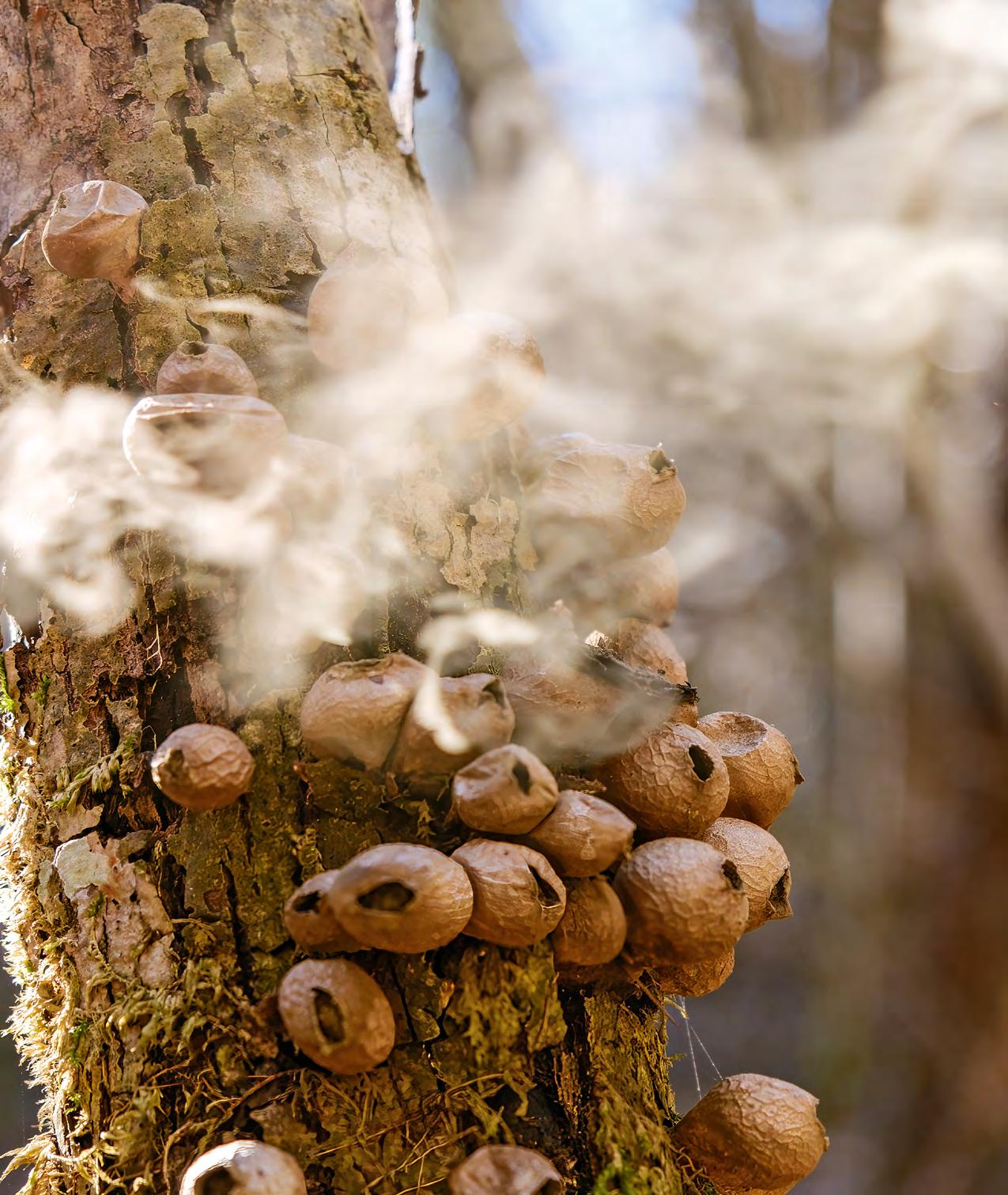 Dieser Pilz entführt die Betrachtenden in eine faszinierende Welt voller Details Der besondere Reiz liegt in der natürlichen Erscheinung dieser Holzkeulen� Zahlreiche Exemplare ragen majestätisch aus verwitterten Baumstümpfen em-