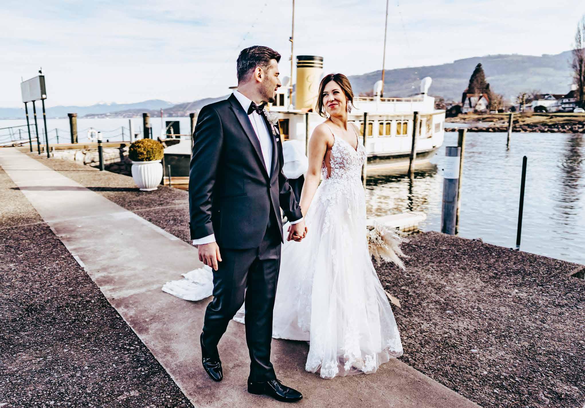 Für all diejenigen mit Fernweh, die aber nicht im Ausland heiraten möchten oder können, haben wir einige andere Inspirationen gesammelt. Habt ihr gewusst, dass man direkt am Flughafen Zürich in einem Park heiraten kann? Auch der Vierwaldstättersee, die Romandie oder gar das Tessin fühlen sich an, als wäre man im Ausland. Das Gute liegt oft so nah! Das beste Beispiel seht ihr an der wunderschönen Hochzeit von Cristina und Alexander, die wir euch in dieser Ausgabe zeigen dürfen. Apropos Destination Weddings: Umgekehrt geht es natürlich auch. Jillian und Capsar wohnen im Ausland und haben die Schweiz als ihre Destination ausgesucht.