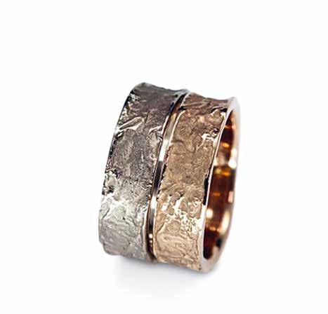 Wunderschönes, gehämmertes Tri Set aus 750/18 K Roségold in mattem finish. Der MemoryDamenring besticht durch die 15 Diamanten 0.225ct wsi , halbrund ausgefasst, passend dazu der gehämmerte Damen Trauring in 2,0 mm Breite und das passende Herrenmodell in 4,5 mm.