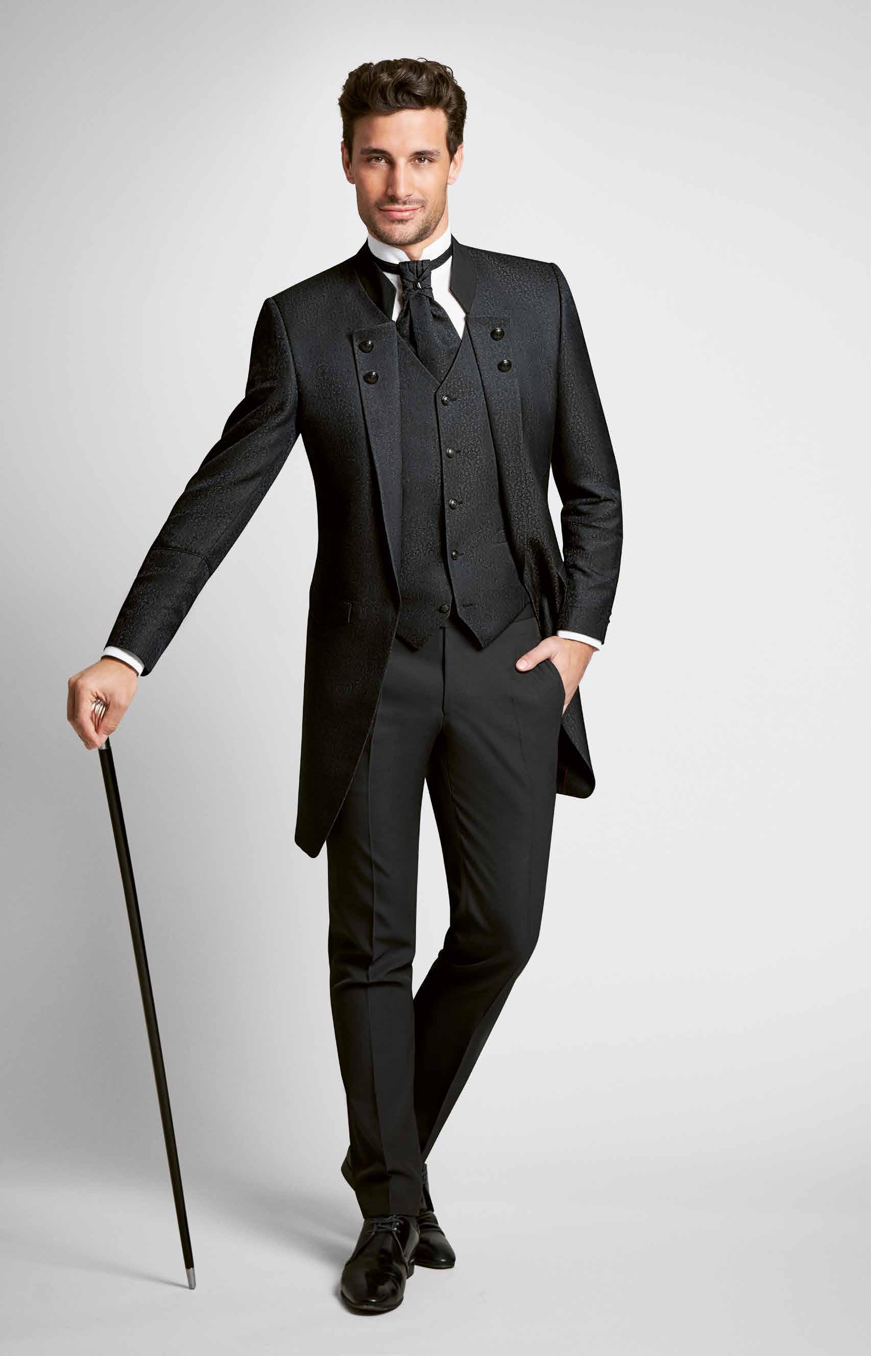 An seiner Hochzeit ist der Bräutigam der König des Tages. Welcher Anzug wird dem gerecht und vor allem in welcher Farbe? Creme und Blau sind jetzt zwar besonders angesagt, aber Schwarz sollten Sie auch in Betracht ziehen. Swiss Wedding erklärt, weshalb die Liebe für diese Farbe ungebrochen ist.