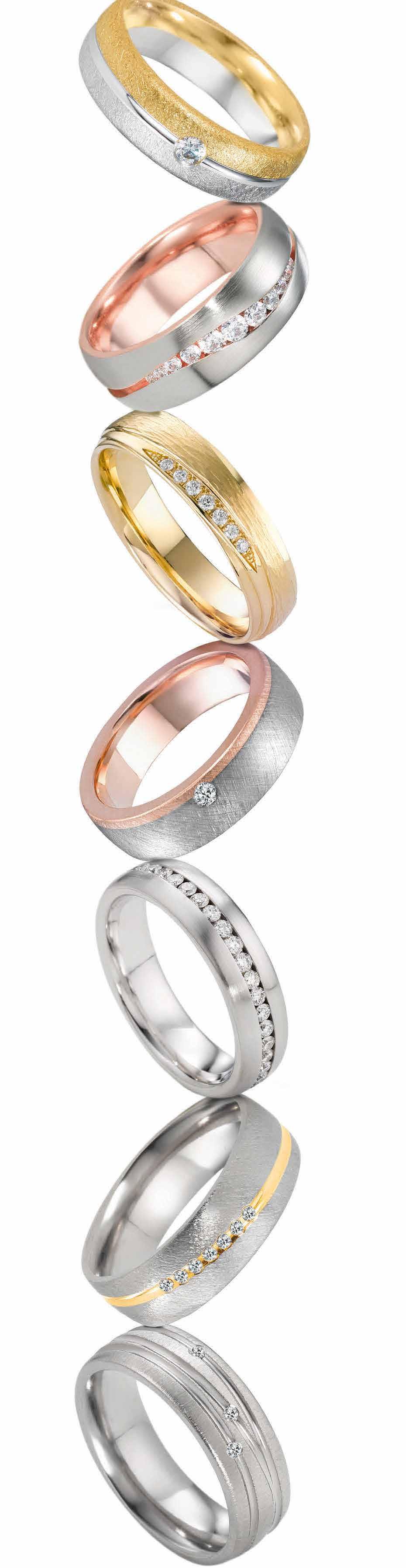 Wählen Sie aus über 800 Partnerringen in Gold, Palladium, Platin, Tantal, Titan, Stahl und Carbon.