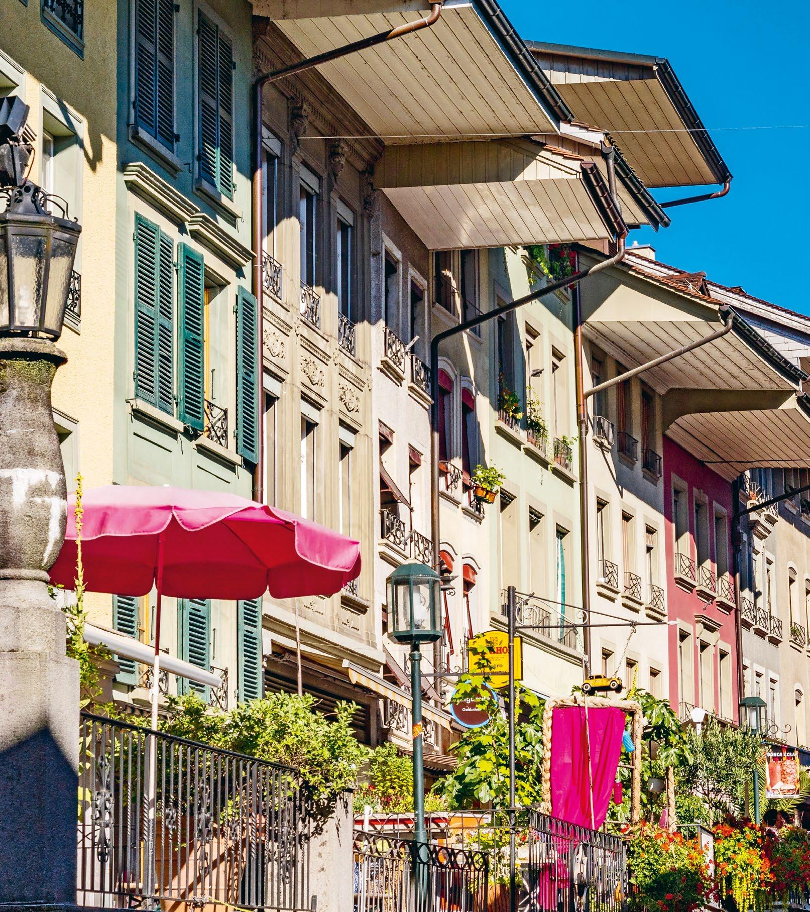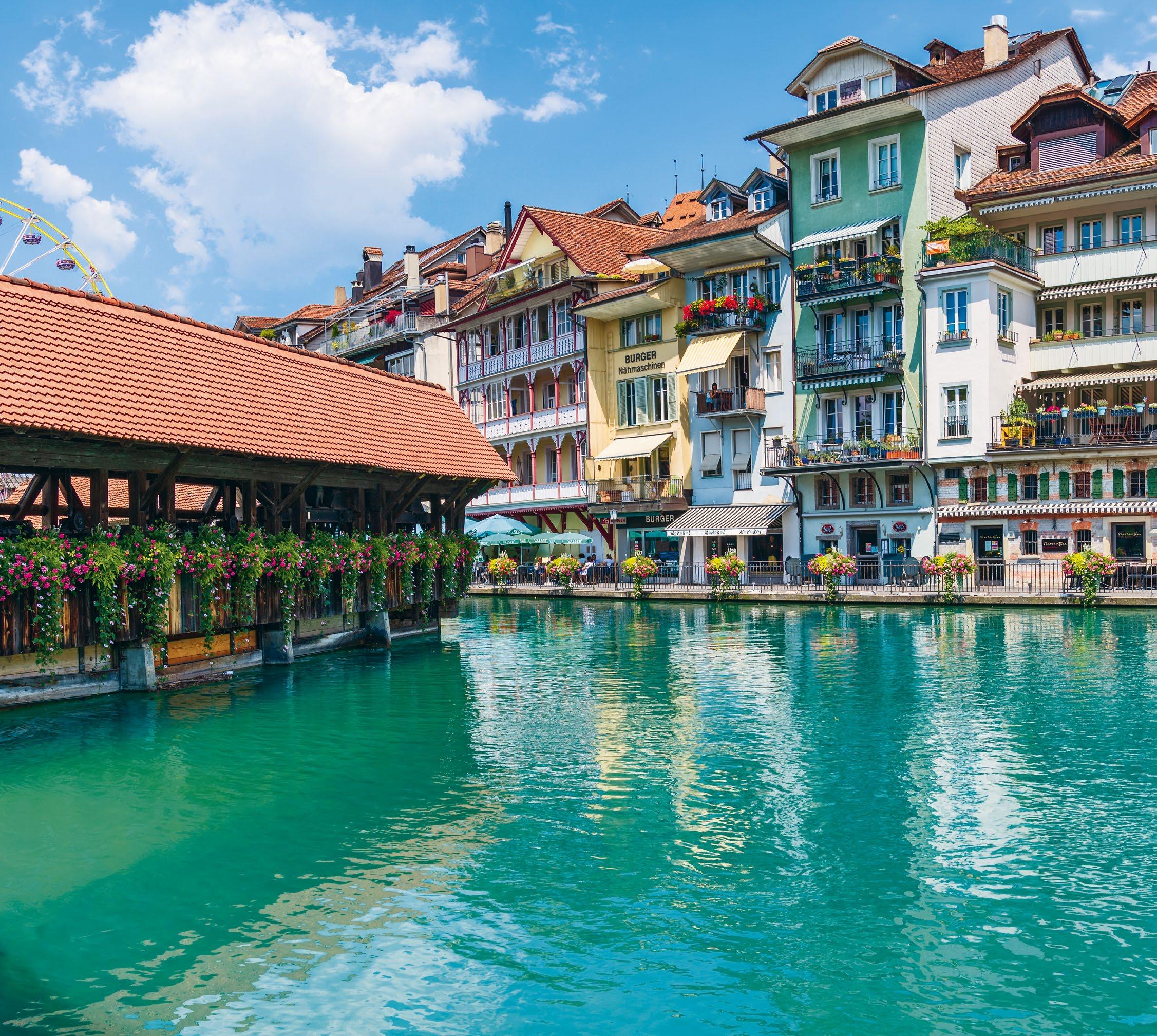 Stadt in ihr bezauberndes Licht taucht. Die Altstadt mit ihren markanten Hochtrottoirs in der Oberen Hauptgasse ist eine der schönsten der ganzen Schweiz. Hier befinden sich auch zahlreiche Spezialitätenrestaurants, die Thuns Ruf als Genussstadt zementieren. Im Gegensatz zu so mancher südlichen Feriendestination ist Thun aber nicht über laufen und man findet immer einen schönen Platz. Besonders reizvoll für Shop-