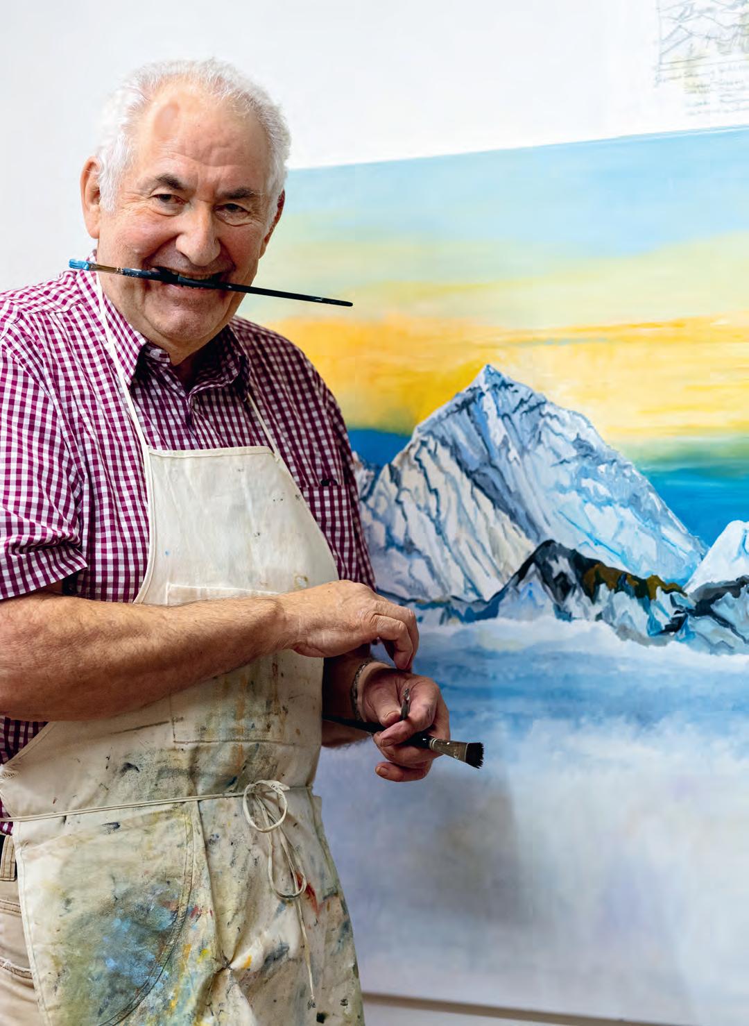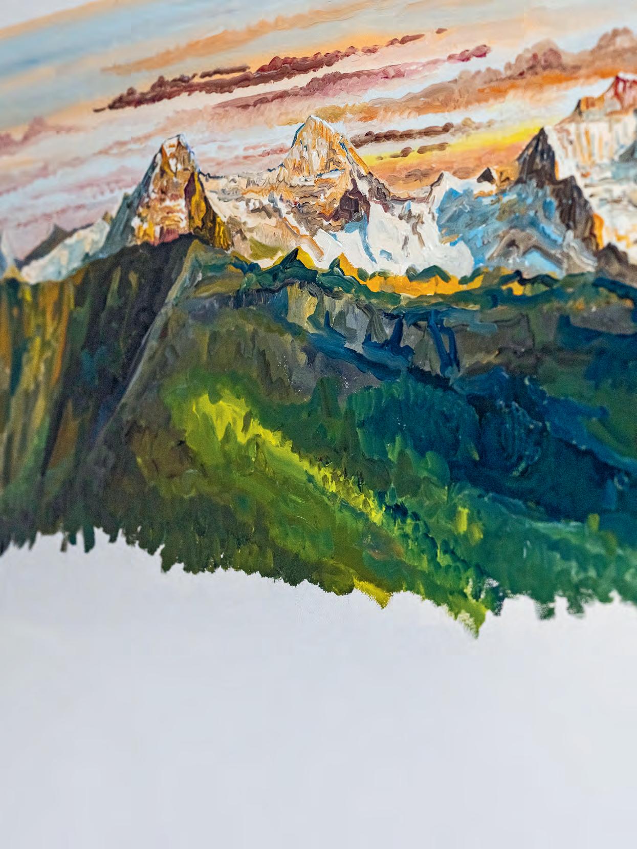 Die Kunst des Sehens Einer macht es anders. Hans Jossi, heimatberechtigt in Grindelwald und aufgewachsen im Berner Ob erland, viel herumgekommen in der Schweiz und weit darüber hinaus, heute wohnhaft in Uetendorf, ist Maler. Seine Kunst hält die Berge dieser Welt auf der Leinwand fest. Nicht nur die der Schweiz. Sämtliche 8000er-Riesen hat er, soweit möglich, vor Ort besucht. Er war in Nepal, Tibet, in Pakistan und auch bei den grossen Bergen in Nordund Südamerika, vom Denali in Alaska bis nach Patagonien. Immer mit dabei: ein Zeichenblock und Stifte.