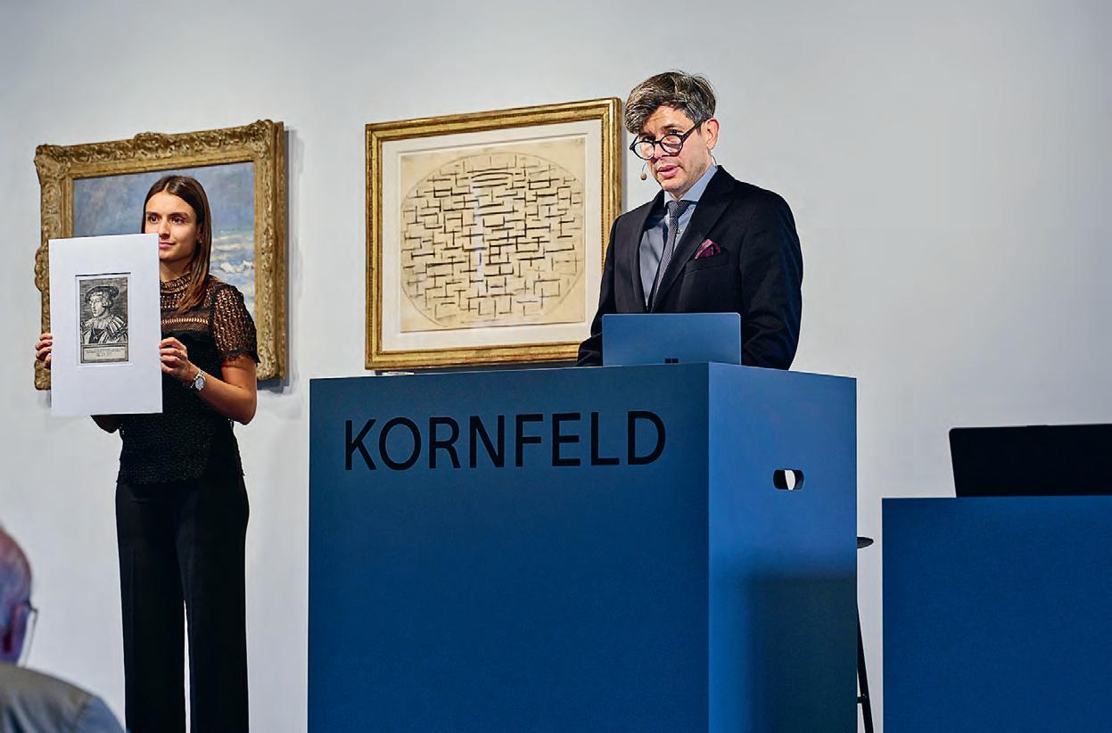 Der Auktionator in Aktion (oben) und seltene Stücke an den Altmeisterauktionen.