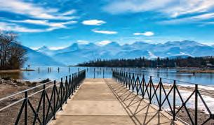 Bei einem Spaziergang rund um den See lassen sich die prächtigen schneebedeckten Berge bestaunen.