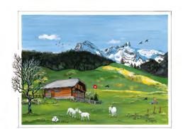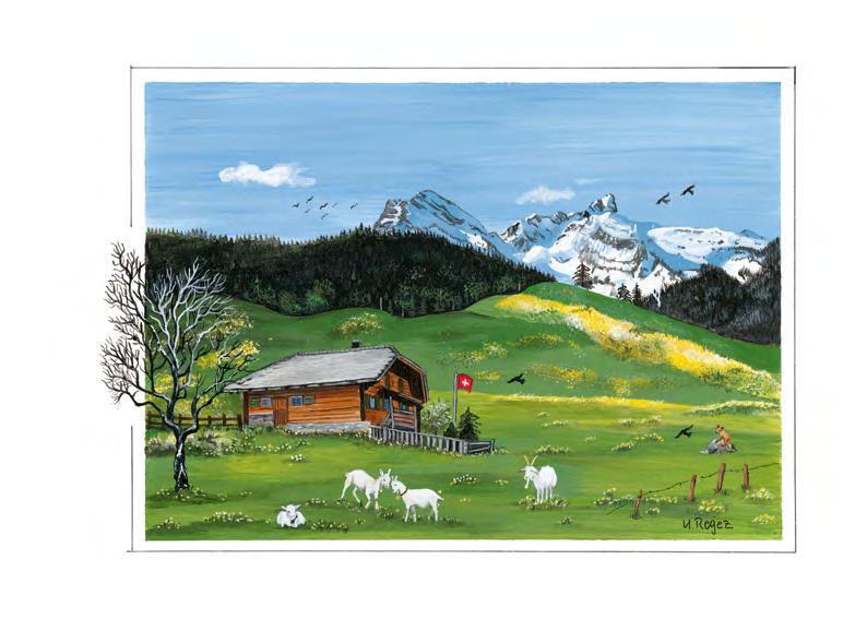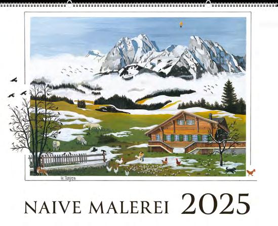Ursula Regez ist eine äusserst vielseitige Künstlerin – sie fühlt sich gleichermassen wohl mit der filigranen Schere wie mit dem Plasmaschneider, kreiert aber auch dreidimensionale Kunstwerke aus Keramik, verziert Firmenautos und stellt Garderoben in ihrem ganz eigenen Stil her. Für unseren neuen Kalender «Naive Malerei» entführt sie uns zwölf Mal auf charmante Weise in eine heile Welt von Alpenpanoramen, Kuhherden und verwunschenen Landschaften.
