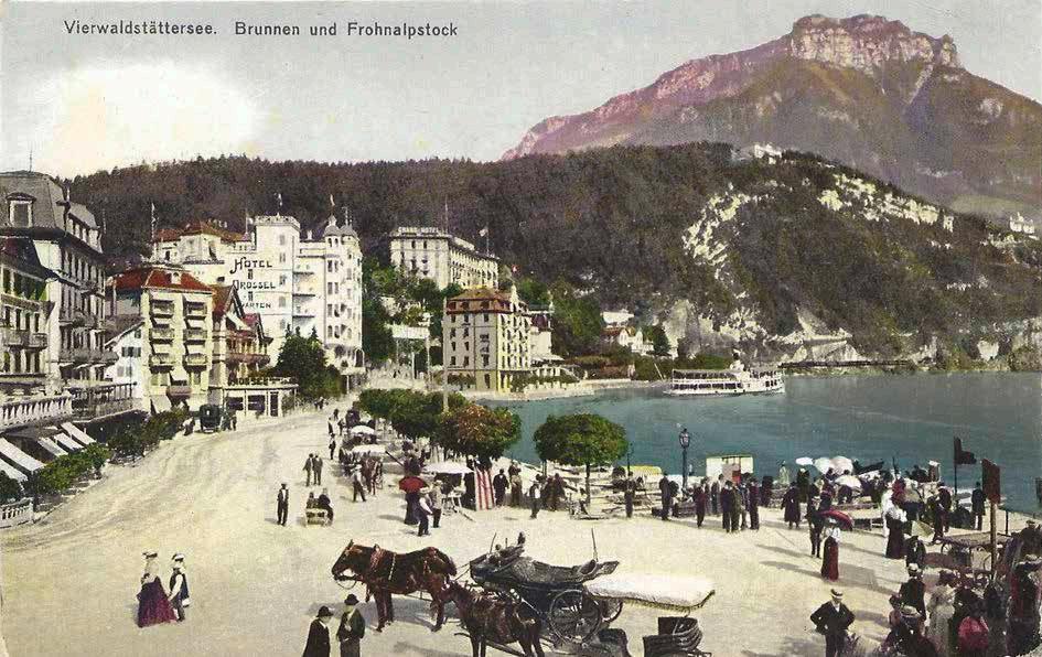 Initiative der GebrĂŒder Segesser das im August 1845 eröffnete Hotel Schweizerhof mit dem Schweizerhofquai. Auslöser einer weiteren intensiven Hotelbauphase war der im September 1865 vom Luzerner Regierungsrat genehmigte Bebauungsplan. Dieser regelte die Gestaltung einer neuen Spazieranlage als Fortsetzung des Schweizerhofquais, «wo die Fremden sich der schönen Aussicht wegen vorzugsweise aufhalten»9, mit dem Nationalquai (Abb. 6). In Weggis am See entstand erst nach der Jahrhundertwende, zwischen 1905 und 1909, eine grosszĂŒgige Quaianlage nach dem Vorbild der grossen Tourismusorte, die dort zum Bau von mehreren bedeutenden Hotels an dieser lang gezogenen Baumallee fĂŒhrte. Sie wurde bald mit einem monumentalen Brunnen ausgeschmĂŒckt und mit Kandelabern elektrisch beleuchtet (Abb. 7).10 Im benachbarten Brunnen hatte man vor 1870 eine Quaianlage fĂŒr die Touristen des damals eröffneten Grand Hotels WaldstĂ€tterhof gebaut, kurz nach dem Bau der vom Bund massiv finanzierten Axenstrasse, welche dem Ort einen bedeutenden Zustrom von Touristen brachte.